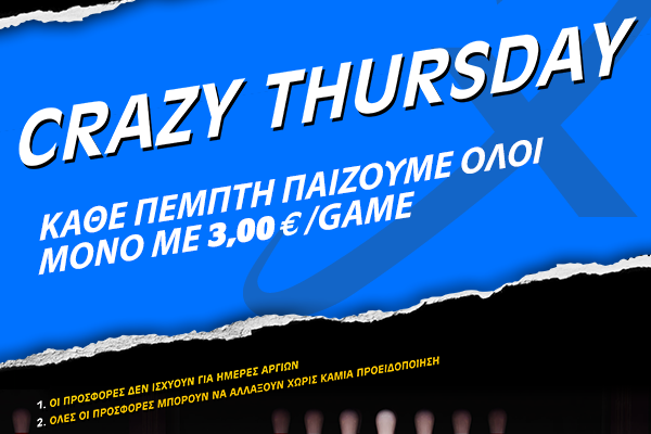 Crazy Thursday - Παίζουμε όλοι μόνο με 3.00€/game